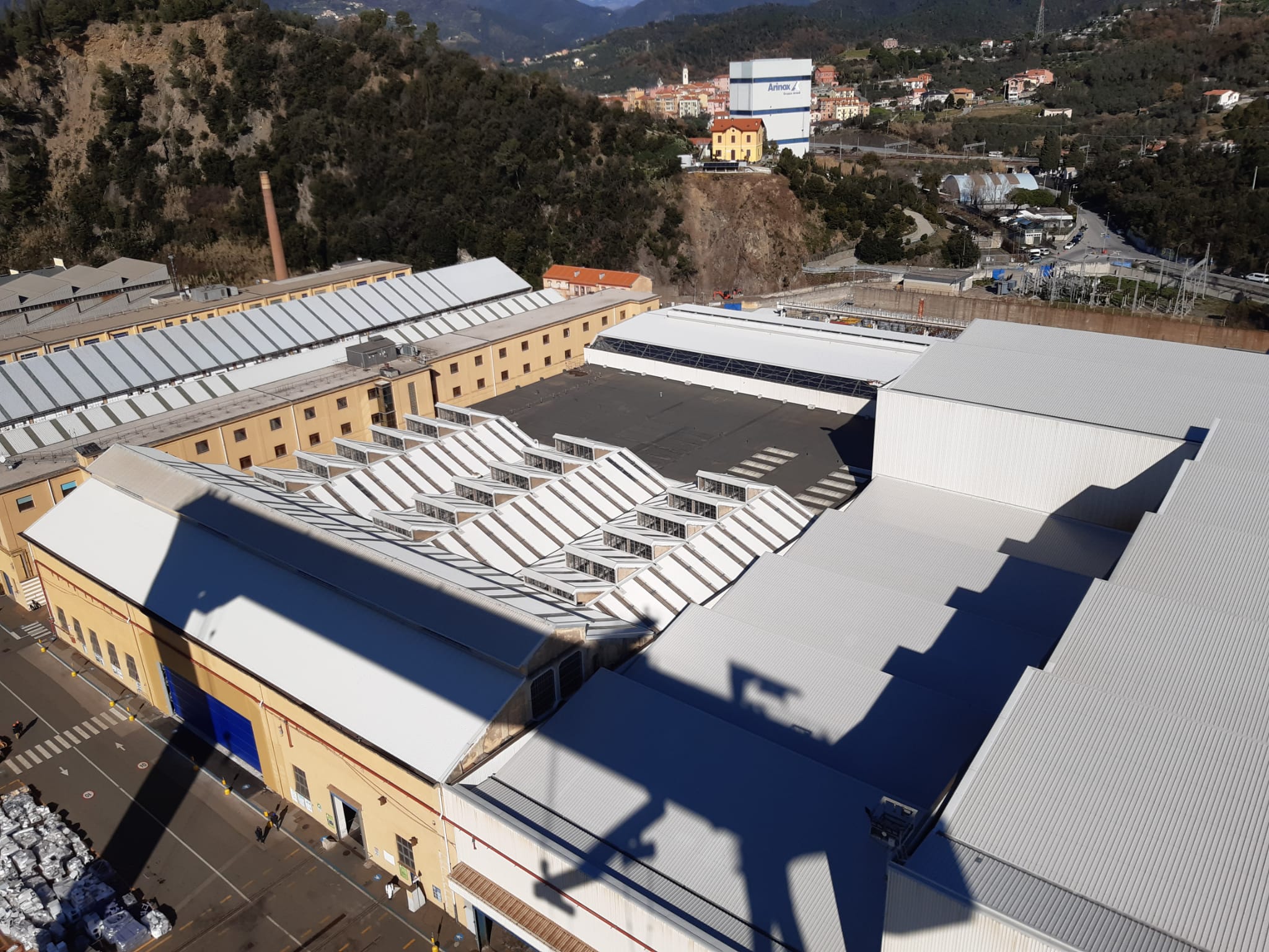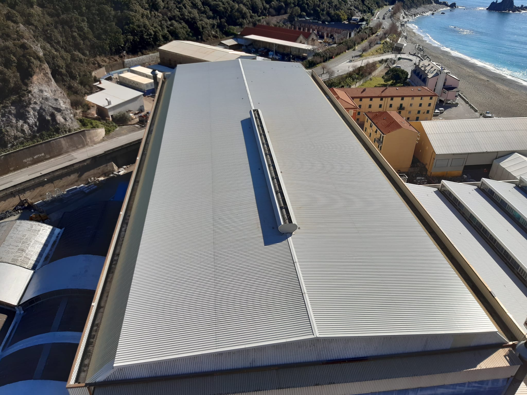 Isomec green srl ha ultimato con successo i lavori di Rifacimento copertura del complesso produttivo denominato “MAS” consistente nella realizzazione di nuove coperture metalliche in lamiera 8/10 preverniciate PVDF, installazioni di nuove superfici traslucide con reti certificate anticaduta presso lo Stabilimento navale Fincantieri di Riva Trigoso (GE)