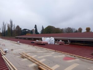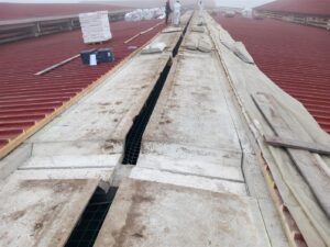 Bonificati circa 1600 mq di lastre in amianto. Posa di una copertura moderna in pannelli sandwich, più performante, durabile e sicura.