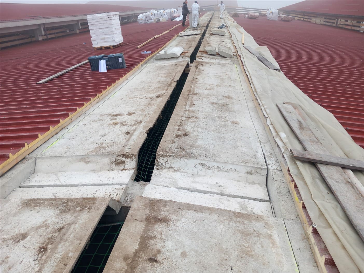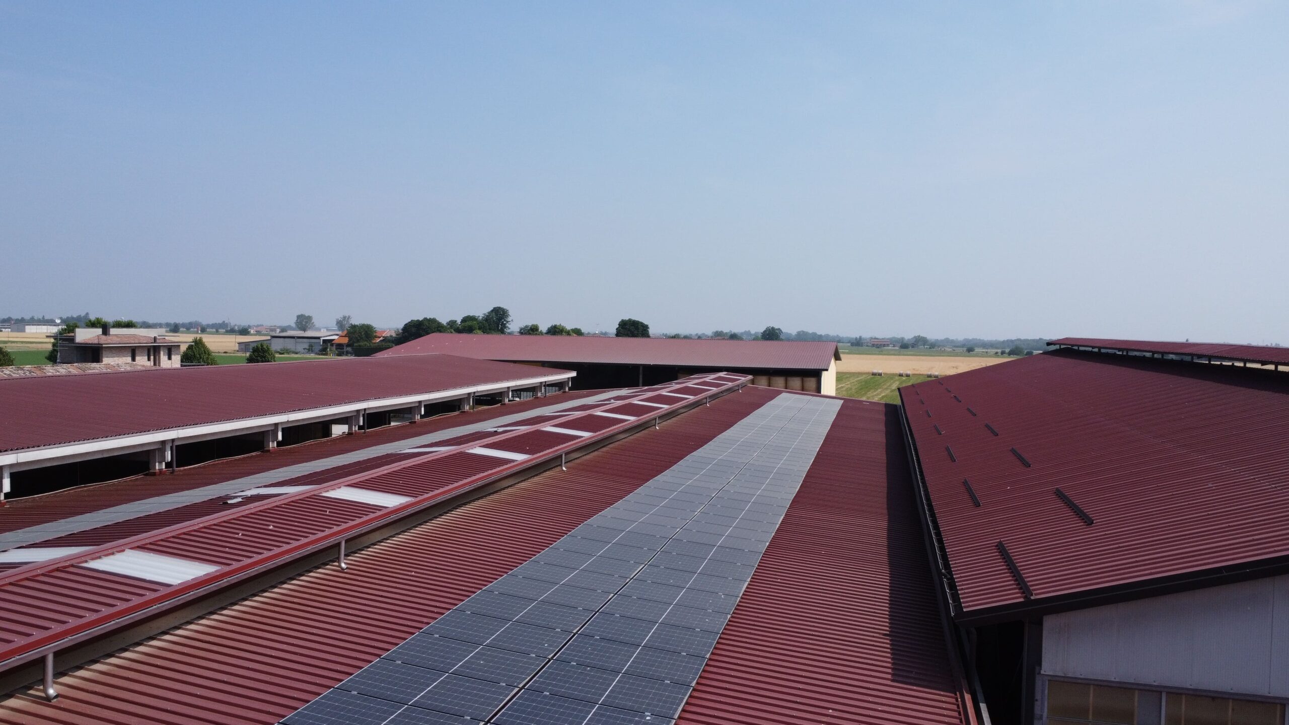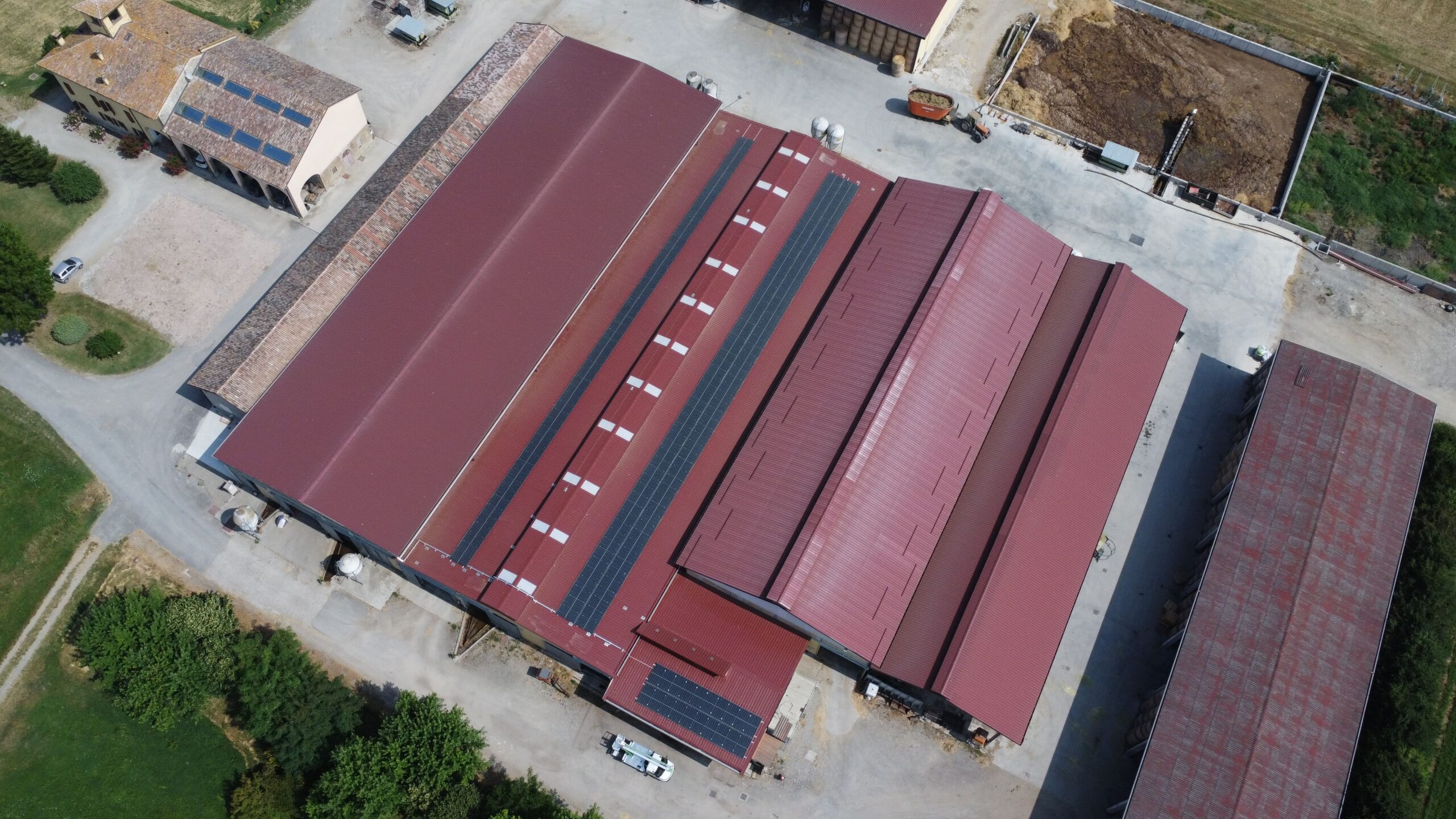 Nella zona centrale è stata eseguita una modifica strutturale del prefabbricato, con l’inserimento di un nuovo colmo areato in profilati metallici e pannelli sandwich, migliorando sensibilmente l’aerazione e l’illuminazione della stalla sottostante.