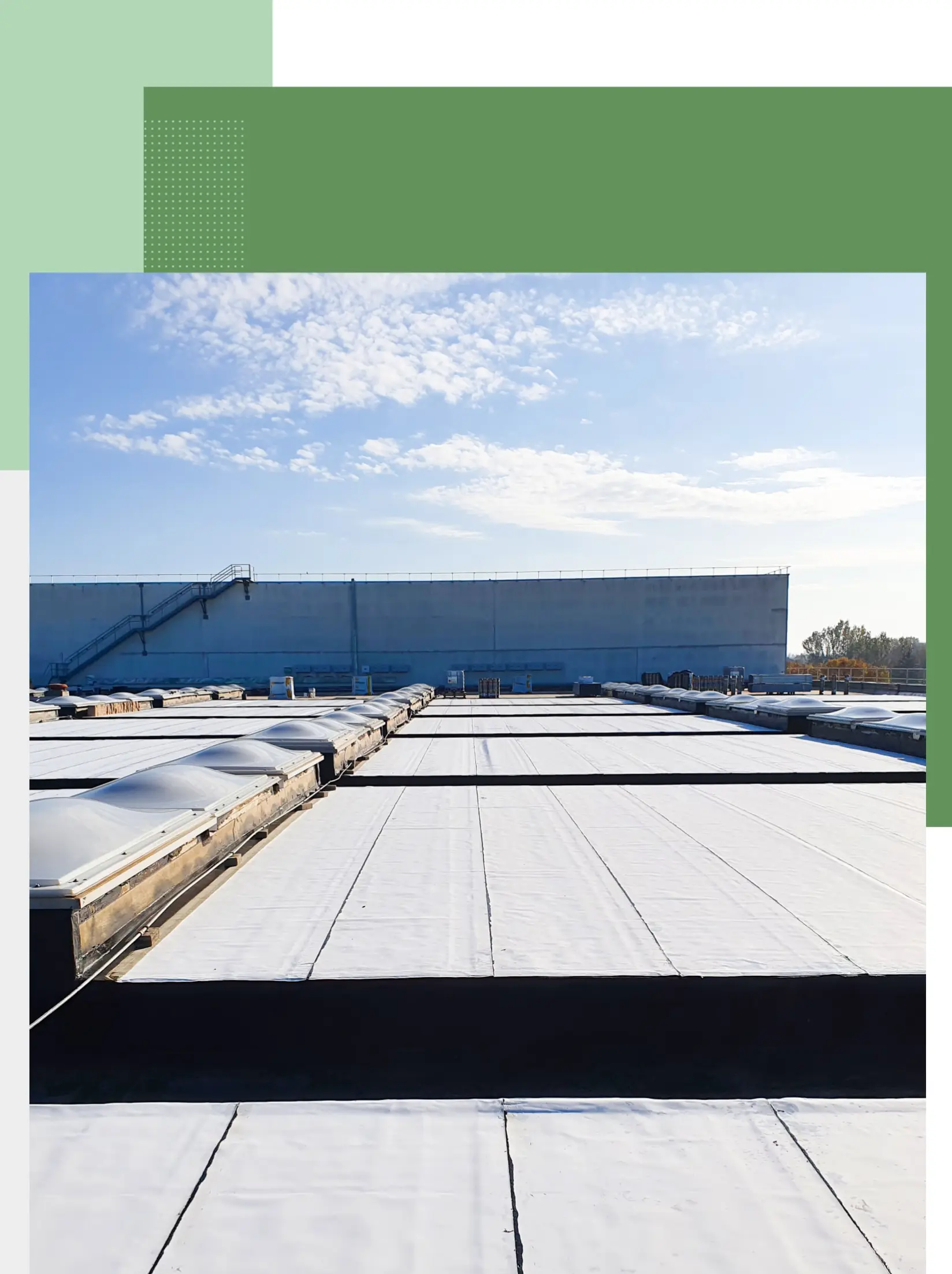 Intervento di rifacimento completo del manto di copertura del magazzino prodotto finito 81, con rimozione e smaltimento del manto esistente, nuova copertura e fotovoltaico